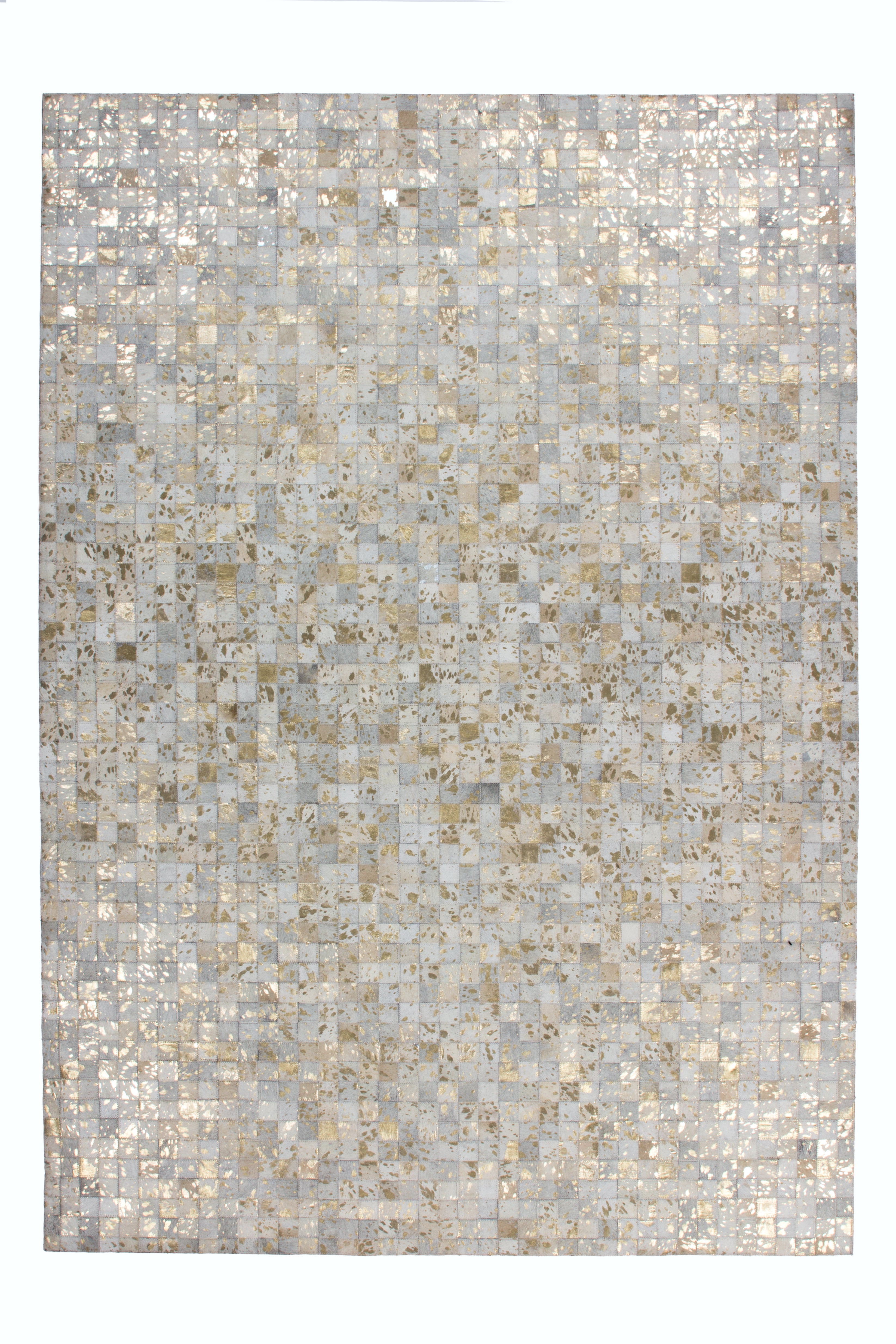 Metalapplikationer på ægte læder med bløde hår kendetegner dette tæppe. Tag dette unikke blikfang med hjem, og dine gæster vil blive forbløffede. Lædertæppet i patchwork-stil er baseret på forskellige nuancer af én farve. Den trykte metalliske folie er tæppets særlige højdepunkt, der tilføjer accenter og får tæppet til at skinne. Ingen to skind er identiske. Ligeledes er hvert af disse lædertæpper unikt på grund af naturlige variationer i størrelse, farve, mønster og tekstur. Disse unikke stykker suppleres af foliedekorationen i klare farver, guld eller sølv. Dette tæppe af høj kvalitet er kærligt håndlavet af det naturlige materiale læder. Dets holdbarhed og robusthed, sammen med dets lysægthed og nemme rengøring, må ikke undervurderes. Blød filt beklædte undersiden af lædertæppet, hvilket understøtter varme- og lydisolering. Selv rum med gulvvarme er ikke et problem for tæppet. Kombineret med attraktive læderhynder, placeret på din sofa eller dekorativt på stole, kan du skabe et slående helhedsindtryk. Den naturlige pels kan falde af med tiden og ved kraftig brug. Ligeledes kan folietrykket skalle af nogle steder. Dette skyldes produktets naturlige natur og er ikke en kvalitetsfejl eller fabrikationsfejl.