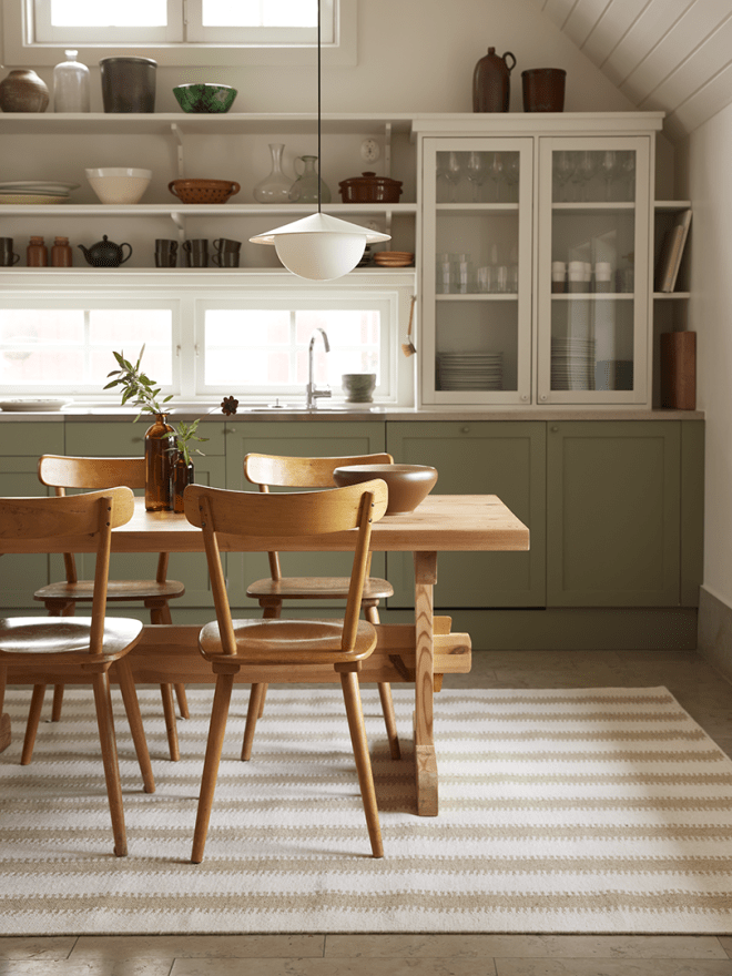 Stripes har et design med omfattende striber, der glider glat ind i hinanden og skaber en smuk overgang mellem de hvide og beige striber. Farverne er tidløse og passer perfekt ind i en række forskellige indretningsstile.