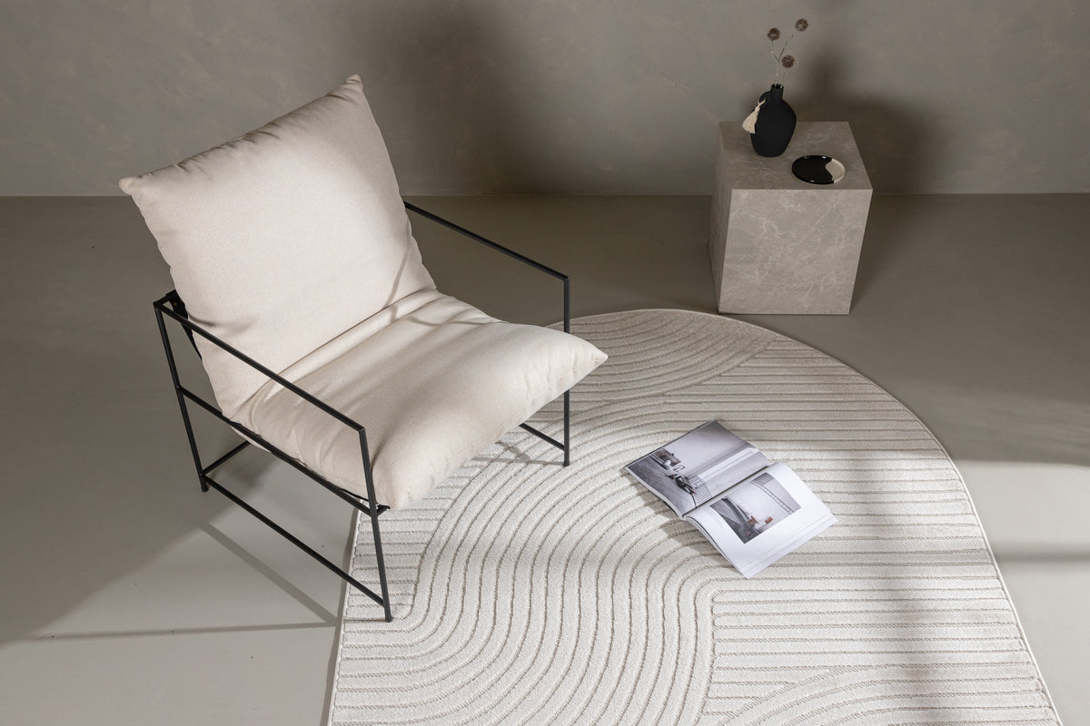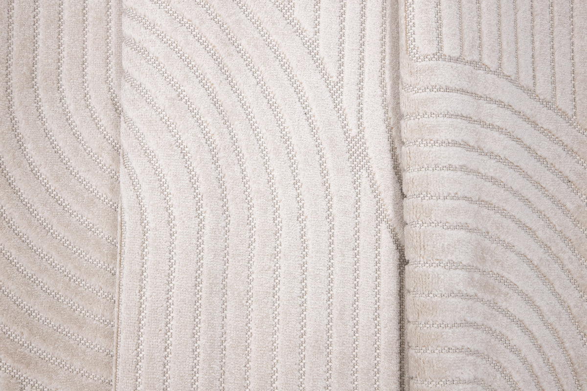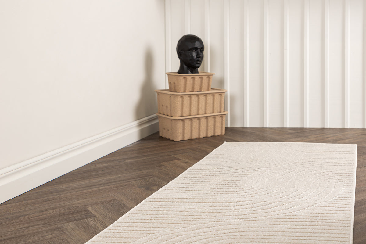 Et lyst og friskt tæppe med lækre detaljer og trendy lineært mønster. Vince tæppeserien tilbyder et moderne udvalg af tæpper i forskellige størrelser. Dette råhvide tæppe har et lineært mønster i den lave luv, der giver liv og bevægelse samt blikfang. Meget nem vedligeholdelse og et mønster helt i tråd med trends i øjeblikket. Læg tæppet under sofagruppen eller i soveværelset og lad tæppet blive en fin indretnings detalje at varme fødderne på.