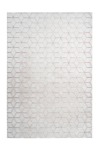 Tæppets udseende er kendetegnet ved dets attraktive prægede mønster, der skaber en slående 3D-effekt. Mønsterets geometriske former giver også tæppet et stilfuldt retro-look. Den ellers enkle, monokrome luv ser godt ud i ethvert opholdsrum og kan takket være sin underspillede elegance kombineres med enhver indretning. Den hyggelige overflade skaber en hyggelig atmosfære i rummet. Tæppet kan også nemt installeres i rum med gulvvarme. En bomuldsbagside og dekorative syninger hele vejen rundt forstærker luven. Samtidig forhindrer overlock-syningen tæppet i at flosse. Tæppets faktiske farve og mønster kan variere fra de viste billeder. Forskellige farvenuancer kan forekomme på grund af forskellig belysning og forskellige luvretninger.
