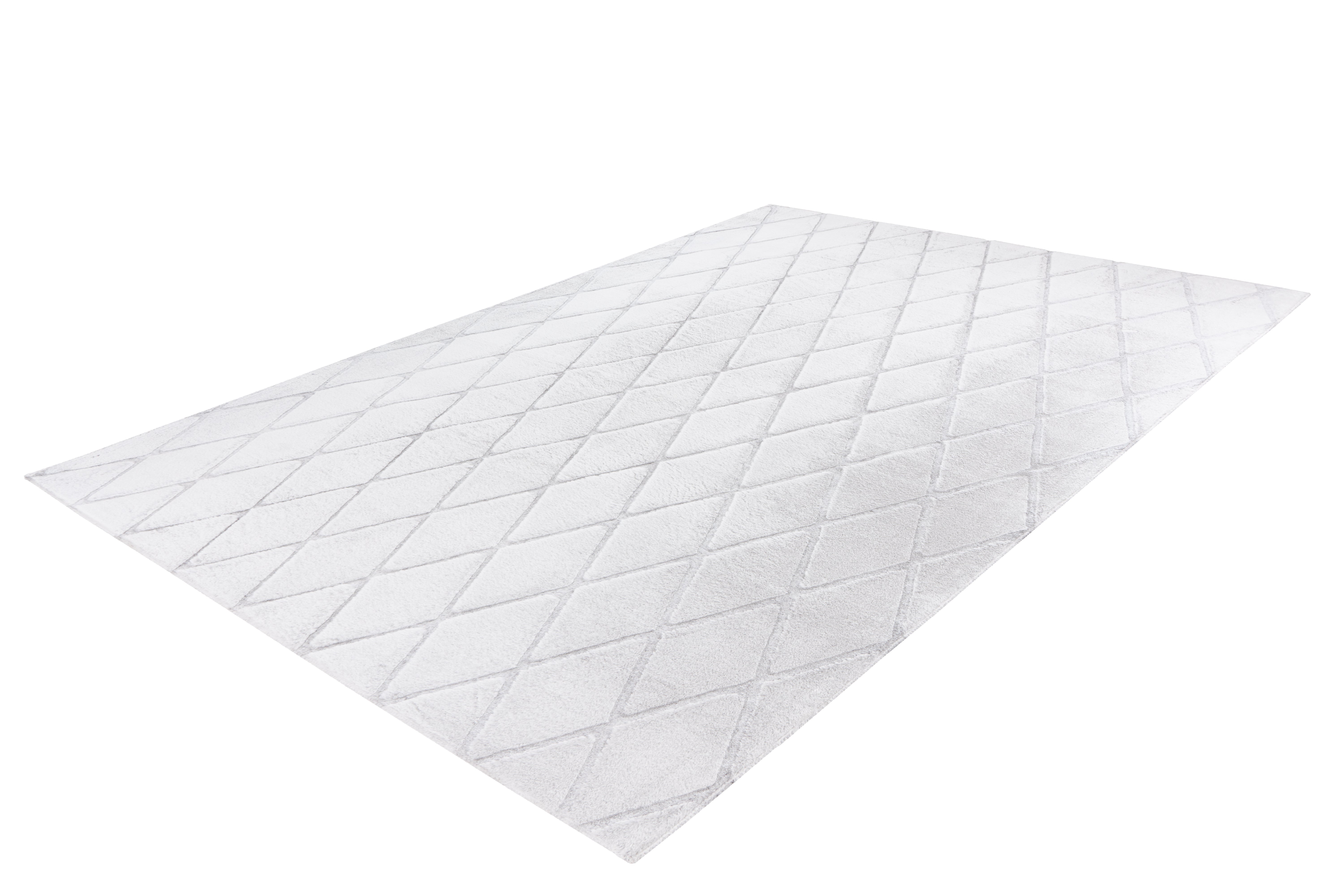 Tæppets udseende er kendetegnet ved dets attraktive prægede mønster, der skaber en slående 3D-effekt. Mønsterets geometriske former giver også tæppet et stilfuldt retro-look. Den ellers enkle, monokrome luv ser godt ud i ethvert opholdsrum og kan takket være sin underspillede elegance kombineres med enhver indretning. Den hyggelige overflade skaber en hyggelig atmosfære i rummet. Tæppet kan også nemt installeres i rum med gulvvarme. En bomuldsbagside og dekorative syninger hele vejen rundt forstærker luven. Samtidig forhindrer overlock-syningen tæppet i at flosse. Tæppets faktiske farve og mønster kan variere fra de viste billeder. Forskellige farvenuancer kan forekomme på grund af forskellig belysning og forskellige luvretninger.