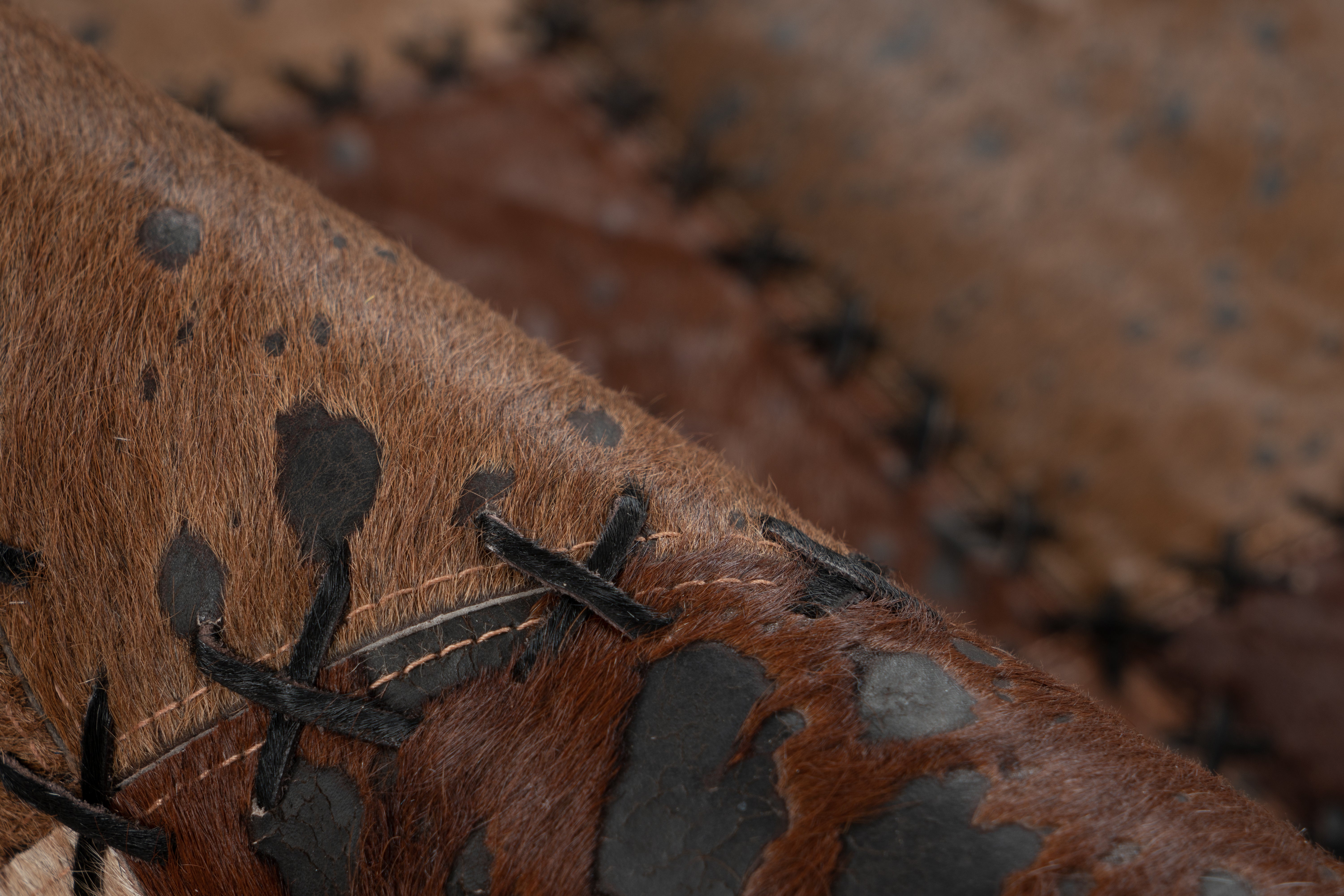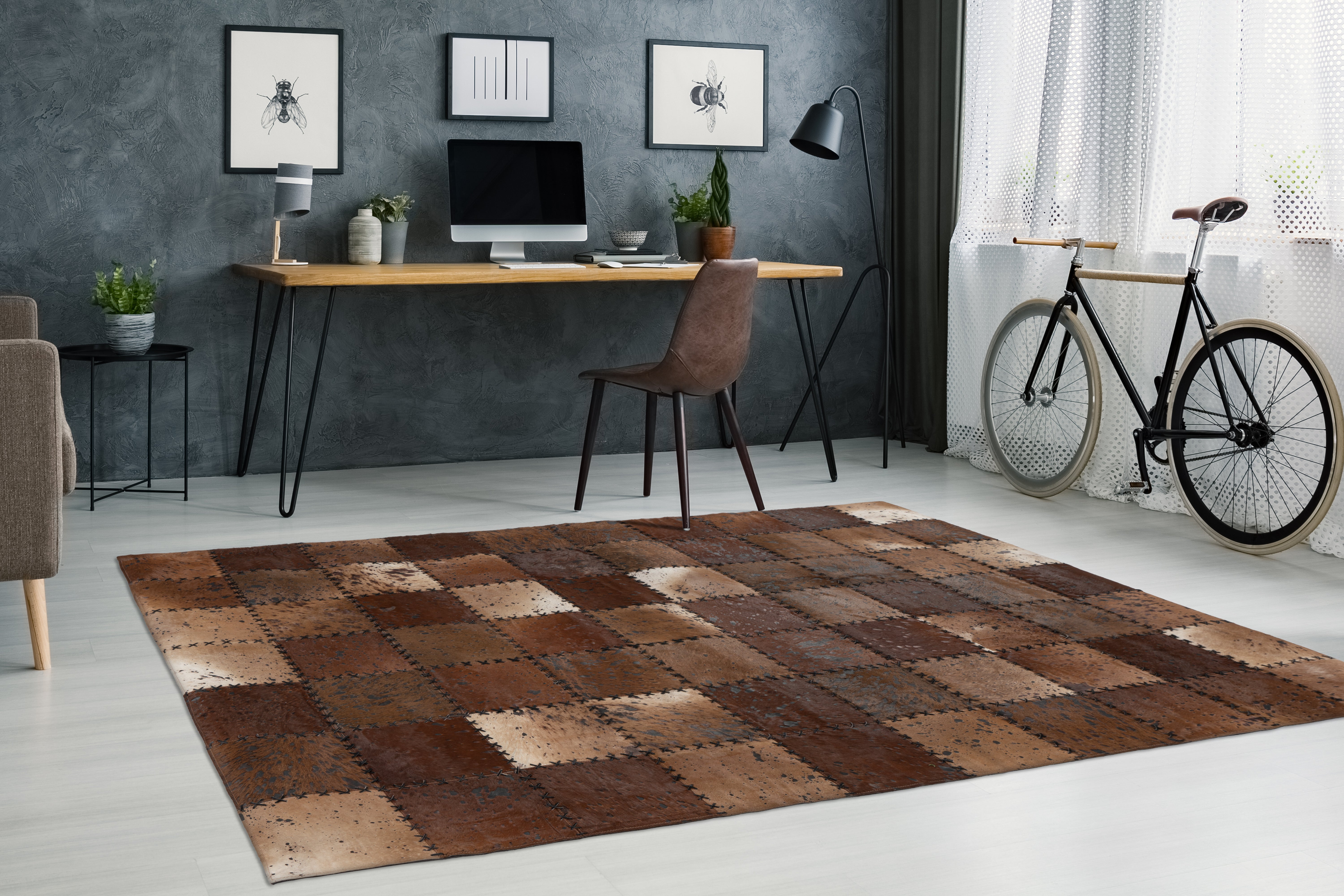 Materiale: Fremstillet af ægte læder i patchworkdesign – hver tæppe er unikt.